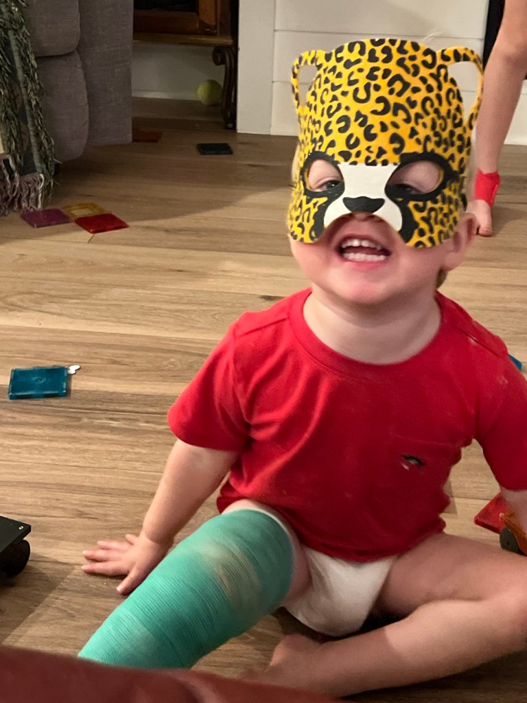 Oh! And I should add… we don’t know how Elijah broke his leg. It’s literally called a “toddler fracture” and we think he did it trying to climb into his brother’s loft bed, but no one actually saw him fall. We are only confident in one thing- it probably won’t be the last cast in this family 🫠